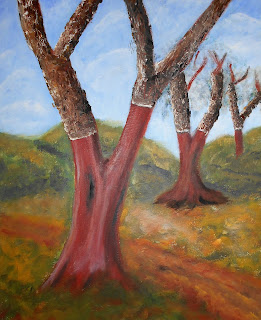 Um trabalho do grupo de pintura em Garvão, e mais um da talentosa Bárbara, que através do seu empenho, gosto e persistência tem produzido coisas muito bonitas. Neste caso estamos com as árvores do Alentejo e uma reprodução artistica, sendo que neste caso não se partiu de nenhuma referência em particular, mas sim de diversas fotos para atingir o trabalho aqui fotografado. Eu julgo que ficou muito conseguido nomeadamente a cortiça. Pena que a foto não ficou muito bem, mas essa é já uma pecha em que caio sempre.